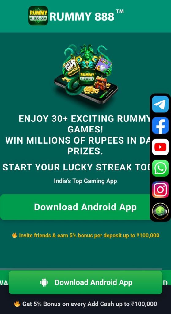 Answer: The Rummy 888 APP APK is an excellent application that offers users a sign-up bonus of ₹550 when they join. This game includes a fantastic bonus program, and you can learn more by reading the complete post. Additionally, Rummy 888 is a popular slots game with a minimum withdrawal amount of ₹100